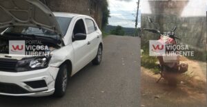 Na tarde da última quinta-feira (26), um acidente de trânsito envolvendo um carro e uma motocicleta foi registrado no bairro Santa Clara, em Viçosa. O acidente ocorreu na Rua Raimundo Albino Moreira, próximo à praça do bairro.