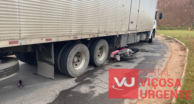 A colisão entre um caminhão e uma motocicleta Yamaha Fazer, ocorreu por volta de 7 horas, no trevo que liga o bairro Peixoto Filho, à rodovia Ubá/Visconde do Rio Branco.