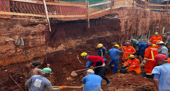 Trabalhadores ficaram soterrados na manhã desta terça-feira (17) no bairro Belvedere, na Região Centro-Sul de Belo Horizonte.