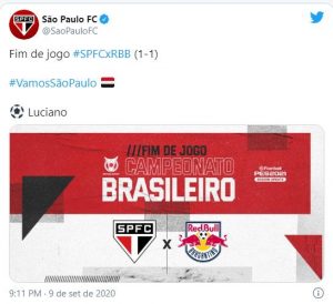 Em partida que iniciou às 19h30, o São Paulo empatou em 1 a 1 com o Bragantino no estádio do Morumbi, em partida com duas cobranças de pênaltis desperdiçadas pelos visitantes.