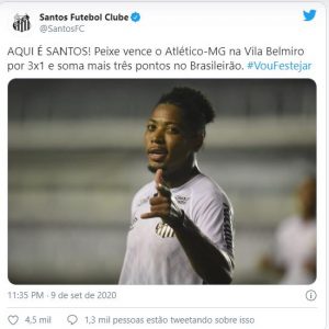 No outro jogo da nona rodada que teve início nesta quarta às 21h30, Santos e Atlético-MG brindaram a torcida com um grande futebol.