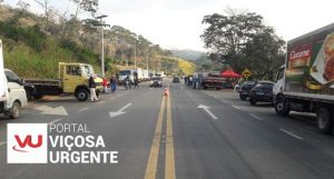 Motoristas de caminhão fazem uma paralisação na Br120 que teve início ontem (24). A classe está reunida próximo da sede do Corpo de Bombeiros em Viçosa.