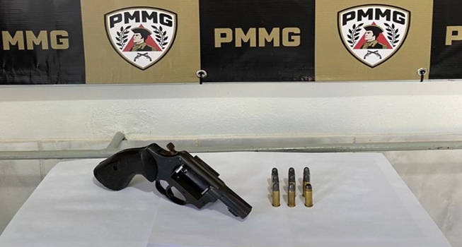 Durante rastreamento, os militares localizaram o autor trafegando em uma moto com as mesmas características informadas. Na abordagem, foi encontrado em seu bolso um revólver calibre .32, da marca Taurus, municiado com seis cartuchos intactos. Além disso, em sua residência foram apreendidas mais três munições.