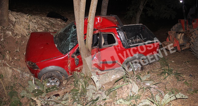 O motorista de uma picape Fiat/Strada, perdeu o controle da direção e bateu em uma árvore, quando transitava de Canaã para São Miguel do Anta.