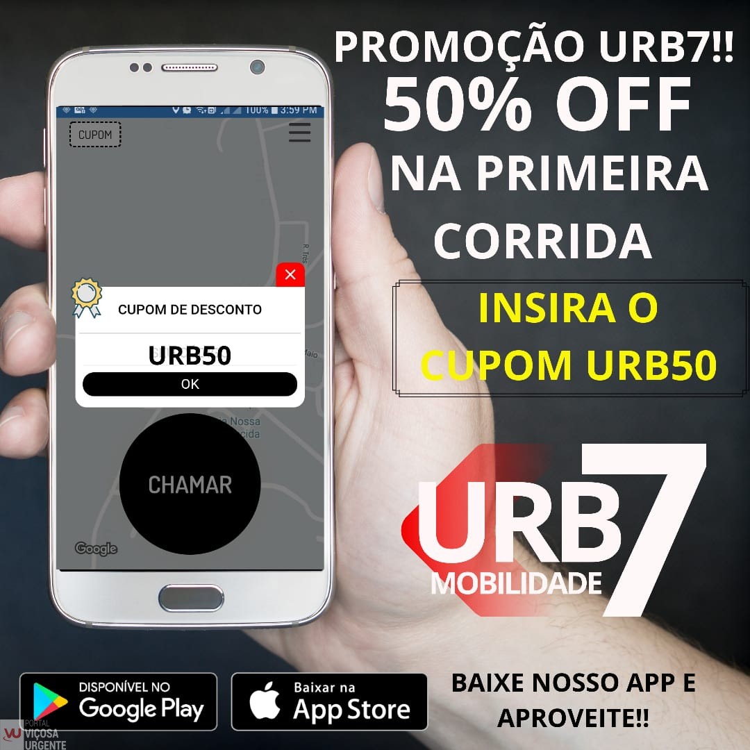 Utilize o cupom: URB50 e tenha 50% de desconto em sua primeira corrida pelo aplicativo URB7.