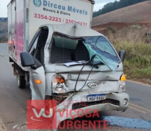 Condutora e passageiro de um caminhão HR, ficaram feridos após um acidente na rodovia que liga Araponga/Canaã.