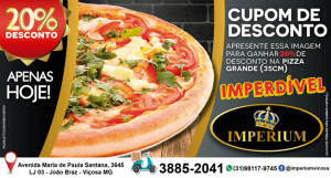 A Imperium dará hoje um descontão para você saborear uma deliciosa pizza! É para pedir e curtir a sexta-feira!