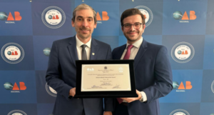 Pela sétima vez, o curso de Direito da UFV foi contemplado com o Selo de Qualidade OAB Recomenda. A entrega aconteceu na quarta-feira (19), em solenidade promovida pela Ordem dos Advogados do Brasil (OAB), em Brasília (DF). No evento, a Universidade foi representada pelo reitor Demetrius David da Silva e o coordenador do curso de Direito, Daniel de Pádua Andrade (foto).