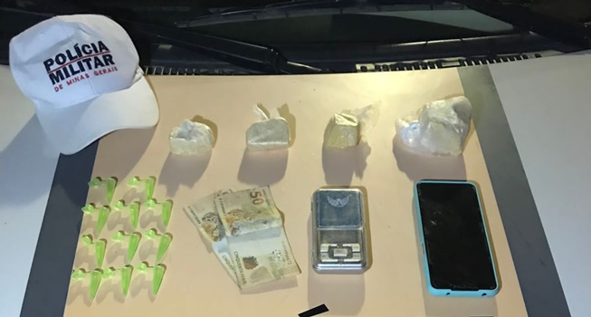 Após busca pessoal foi encontrado um tablete de cocaína na cueca do passageiro. Durante parlamentação e após as devidas diligências foi encontrado na casa do condutor, onde estava a sua esposa D.M.G, 36 anos, mais três tabletes de cocaína, uma balança de precisão e cem reais em moedas correntes e eppendorfs vazios. Os suspeitos informaram que vinha de Viçosa com destino Juiz de Fora.