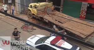 Na tarde de sábado 22/02, um caminhão transitava pelo centro de Ervália, quando o motorista perdeu o controle da direção e acabou atingindo um ciclista e posteriormente bateu em um prédio.