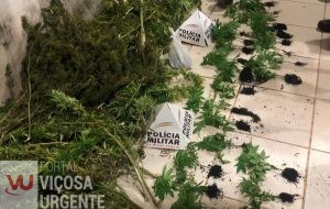 Foi apreendido o VEÍCULO VW/ GOL, PLACA BMP9783, utilizado na prática delituosa, onde os autores colocaram um televisor e ainda certa quantidade de drogas semelhante à maconha no interior de dois potes no banco traseiro. Havia ainda na propriedade da vítima vasta plantação de maconha. Tais substâncias foram recolhidas e encaminhadas a autoridade policial juntamente com os autores. Não houve feridos em decorrência dos disparos. Foram encontradas 03 munições cal. 44 intactas, 01