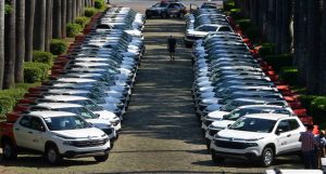 O governador Fernando Pimentel entregou, nesta quinta-feira (26/10), em cerimônia no Palácio da Liberdade, em Belo Horizonte, 60 carros para ações da saúde a 59 municípios. O investimento com recursos do Tesouro do Estado foi de cerca de R$ 6,5 milhões e os veículos atenderão demandas de monitoramento da qualidade da água, vigilância em saúde e atividades de vigilância e controle de peste e malária nas regionais de Saúde de Belo Horizonte, Coronel Fabriciano, Diamantina, Governador Valadares, Januária, Montes Claros, Pedra Azul, Ponte Nova, Teófilo Otoni e Unaí.