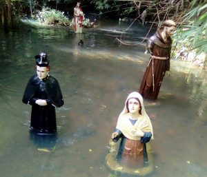 Sete imagens de santos da igreja católica foram encontradas em um córrego na cidade de Porto Firme. O fato aconteceu na manhã de quinta-feira (28), na localidade de Boa Vista, Zona Rural daquele município. Moradores que passavam pelo local avistaram as imagens e acionaram a guarda municipal patrimonial e a polícia militar.