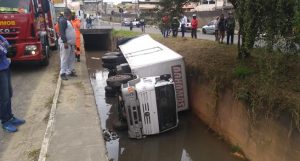 O Corpo de Bombeiros Militar foi acionado para retirar o condutor que estaria preso dentro do veículo. Porém, quando as duas viaturas do Quarto Batalhão de Bombeiros Militar chegaram no local do acidente, a vítima, sexo masculino, 52 anos, já se encontrava fora do caminhão, pois foi retirada por populares. A vítima estava confusa e com um corte na nuca, devido a uma pancada, e foi atendida por uma equipe de enfermagem do SAMU.
