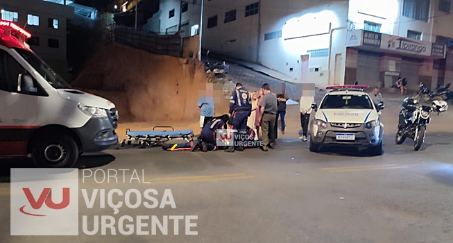 Um pedestre e um motociclista ficaram feridos em um acidente registrado na noite de domingo (26) na Avenida Marechal Castelo Branco, bairro Santo Antônio, em Viçosa.