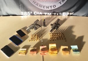Ele alegou que usava as armas para se proteger de rivais. No imóvel, também foi encontrada uma quantia em dinheiro. Uma mulher de 29 anos, que estava na casa, também foi detida. Ambos foram conduzidos à delegacia.