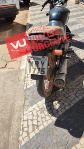 Após a consulta à placa da motocicleta, MRY-1775, as autoridades constataram que o veículo estava cadastrado como produto de roubo em Viçosa no dia 30/10/2023. Além disso, a moto foi utilizada em um assalto a uma joalheria no município.