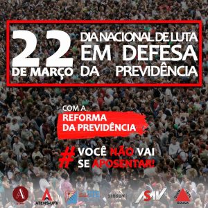 A próxima sexta-feira (22) é o Dia Nacional de Lutas contra a reforma da Previdência. A data foi definida em conjunto pelas centrais sindicais brasileiras.
