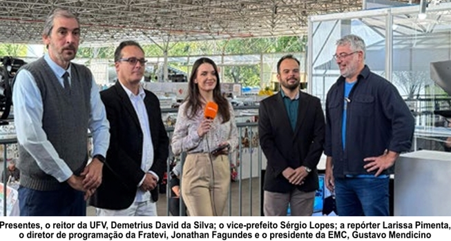 Participaram da cerimônia de lançamento o reitor da UFV, Demetrius David da Silva, o vice-prefeito Sérgio Lopes, o presidente da EMC, Gustavo Mendicino, o diretor de programação da Fratevi, Jonathan Fagundes, e a repórter Larissa Pimenta.