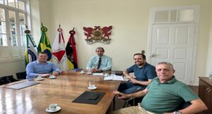 O reitor da UFV, Demetrius David da Silva, o pró-reitor de Assuntos Comunitários, Bruno Henriques, e o diretor do Centro de Ciências Biológicas e da Saúde, João Marcos de Araújo, se reuniram, na tarde desta quarta-feira (4), com o novo superintendente administrativo do Hospital São João Batista (HSJB), Belmiro Amandio Damas Filho. Eles trataram da retomada da parceria entre as instituições, visando ampliar e qualificar os campos de prática para estudantes e profissionais da UFV na área de saúde.