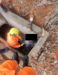 Na manhã deste domingo (23) após acionamento via 193, uma equipe do Corpo de Bombeiros deslocou até à estrada Velha dos Marques, localizada no bairro Vau Açu em Viçosa, para o resgate de um homem, que estava preso em uma tubulação de água pluvial.