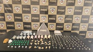 Durante a ação, um suspeito foi abordado e, diante dos indícios do crime, os militares realizaram buscas nas proximidades. Em um ponto utilizado para esconder entorpecentes, foram encontrados diversos materiais relacionados à atividade criminosa.